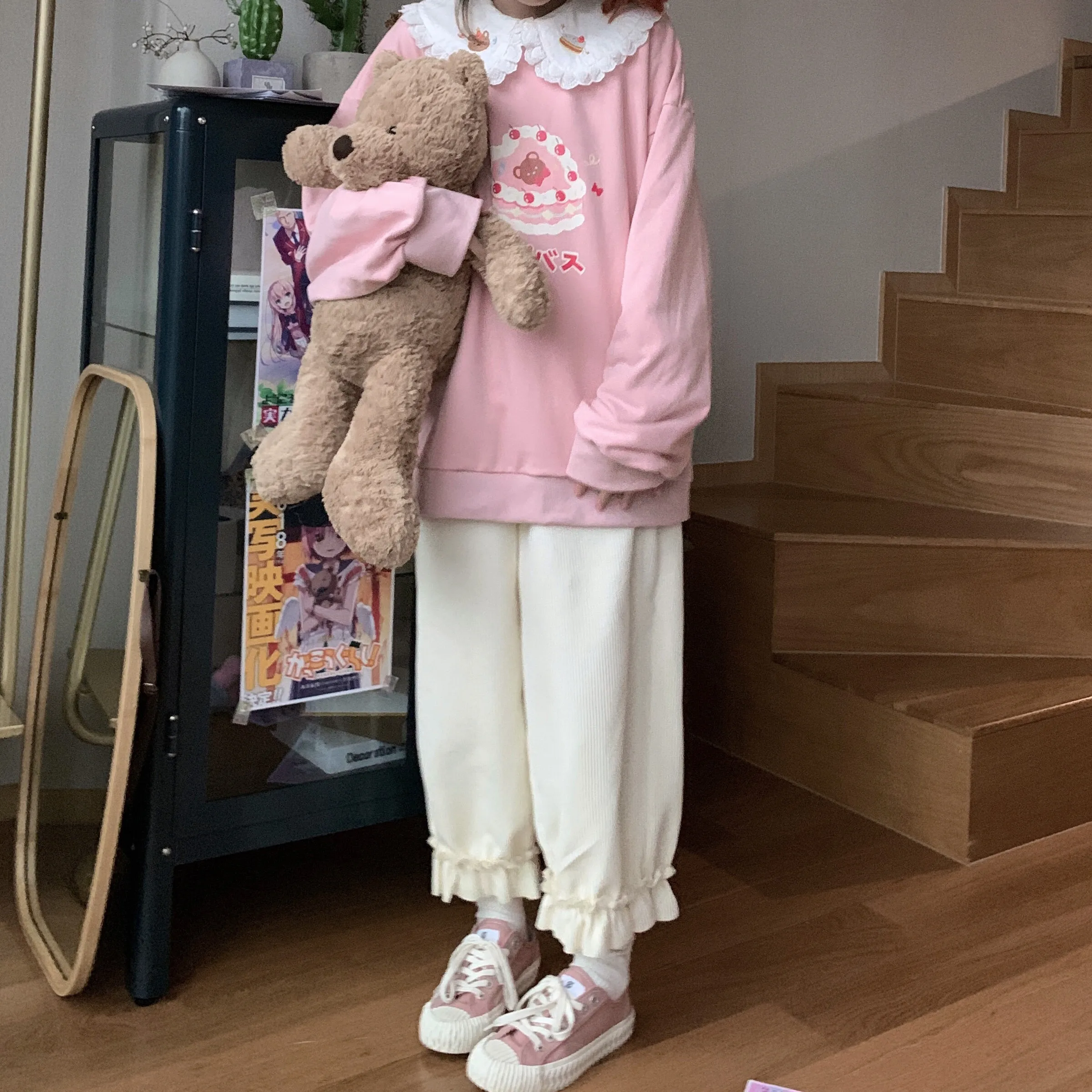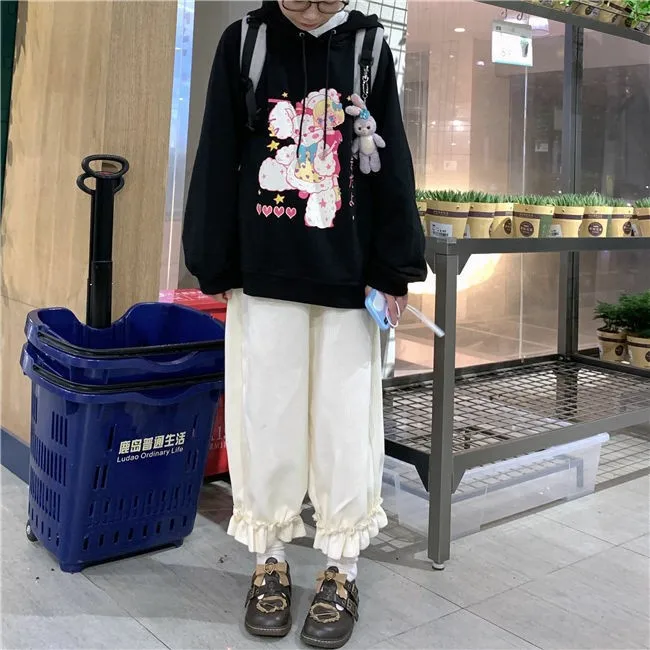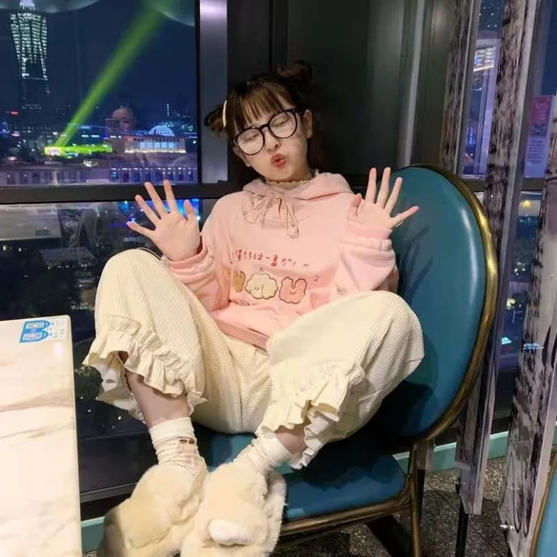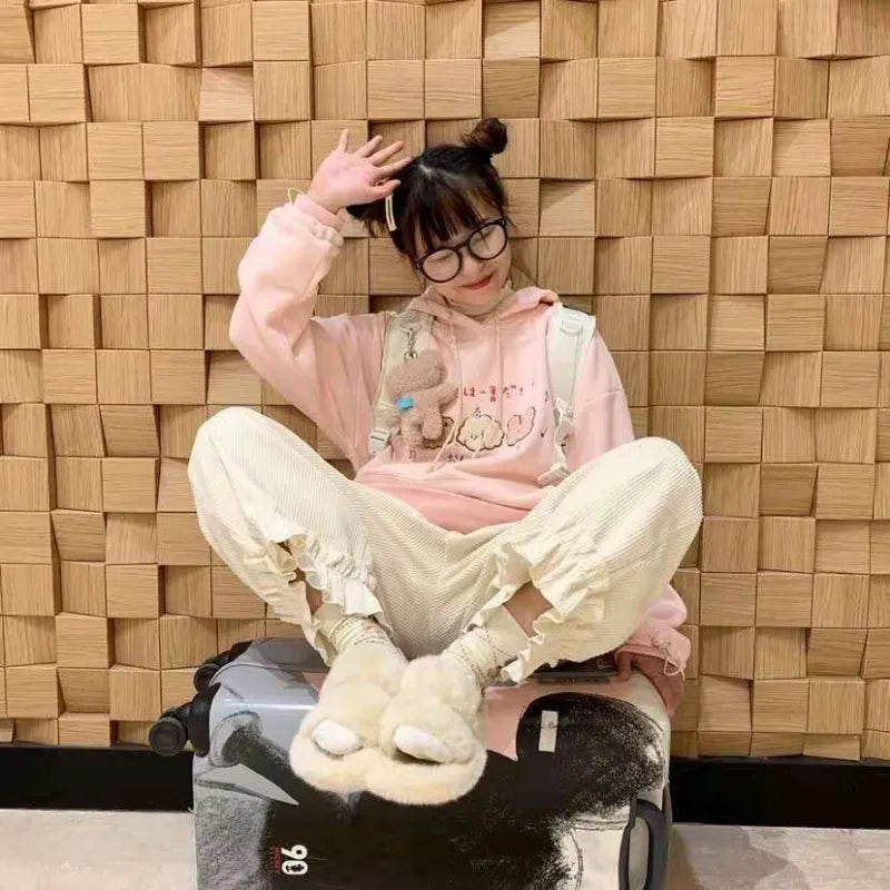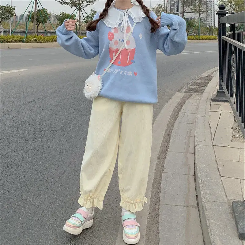 Corduroy Casual Pants Women Solid Lovely Ruffles Students