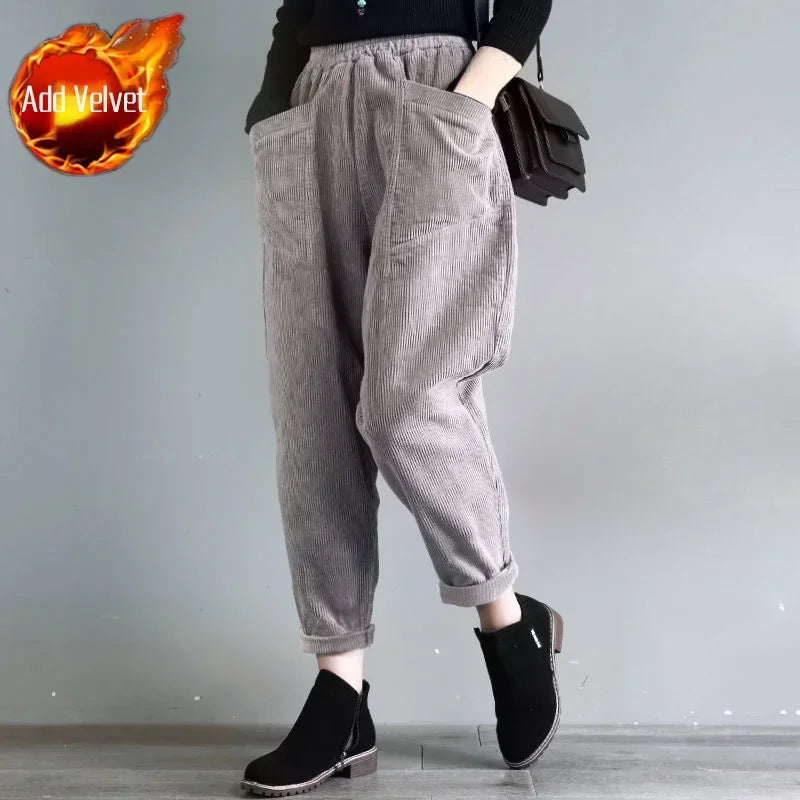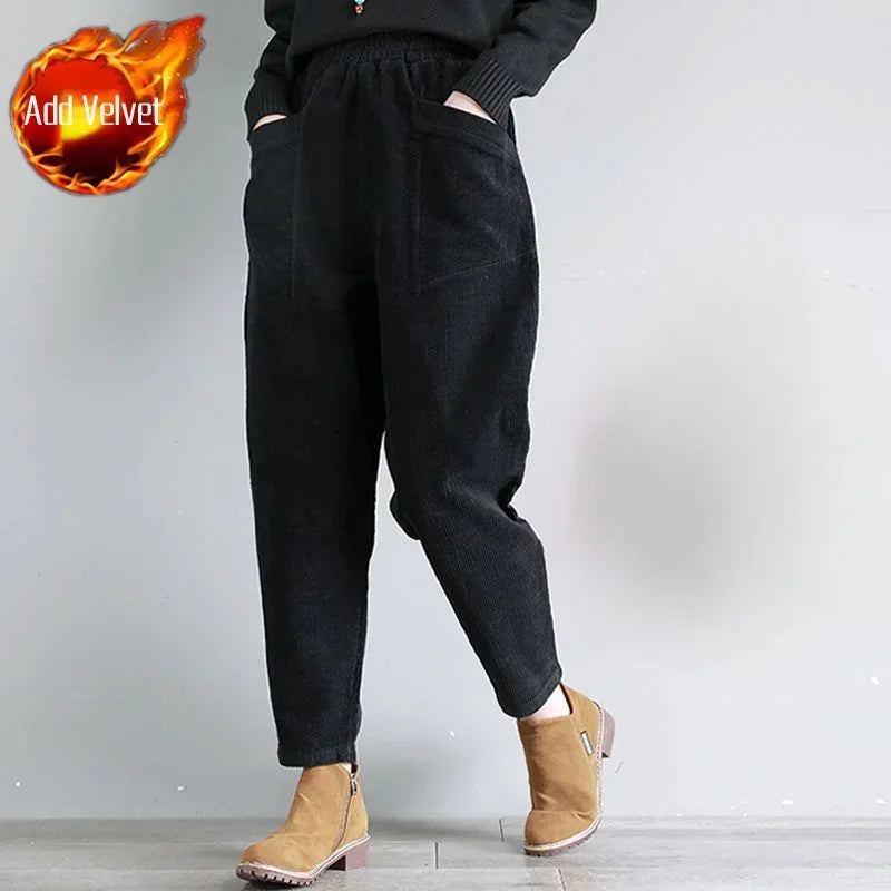 Women's Pants Corduroy Female Trousers Autumn Winter High